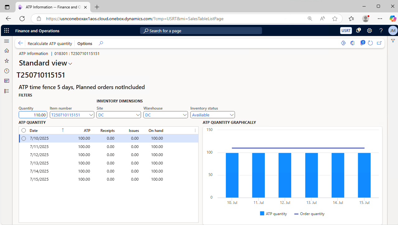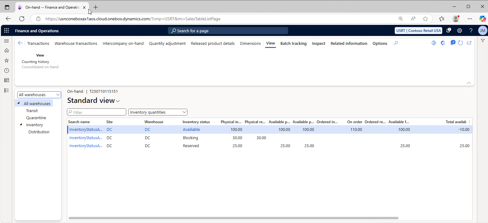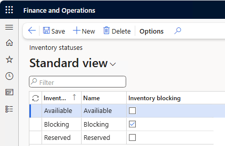 You can now extend the available-to-promise (ATP) calculation by including the Inventory status dimension. With this enhancement, ATP checks no longer consider only the site and warehouse but also take the inventory status into account.