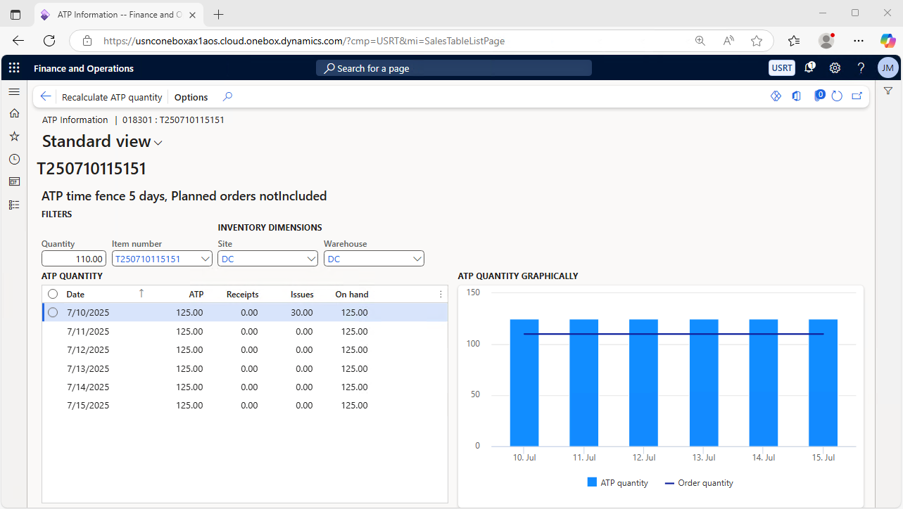 ATP considers site, warehouse, and inventory status for all sales orders and quotations. Delivery dates are calculated based on the stock available per inventory status.If you deactivate this field: